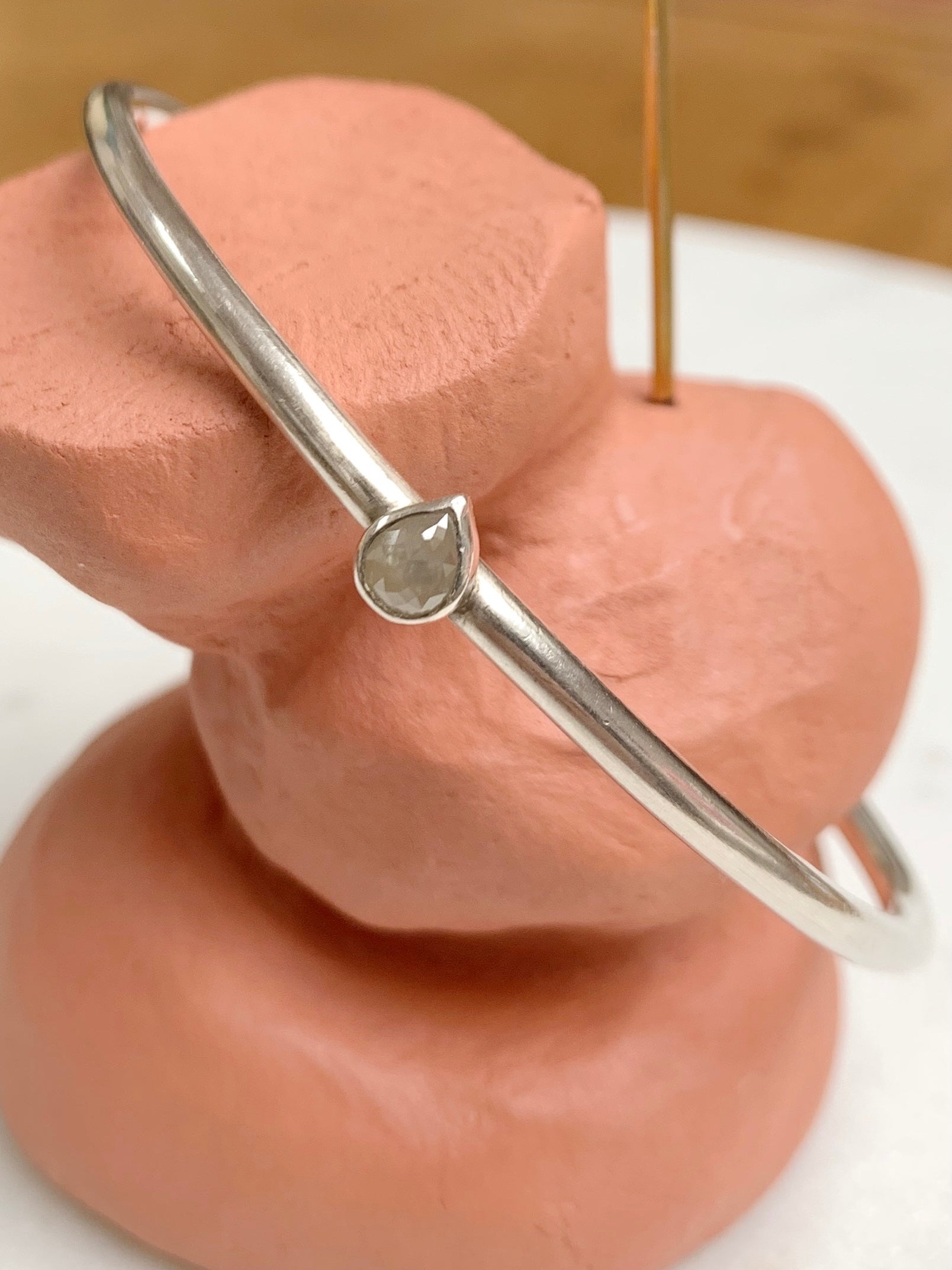 Handmade bangle in sterling silver with an antique fancy rose cut diamond cut in Amsterdam. One Of A Kind.
