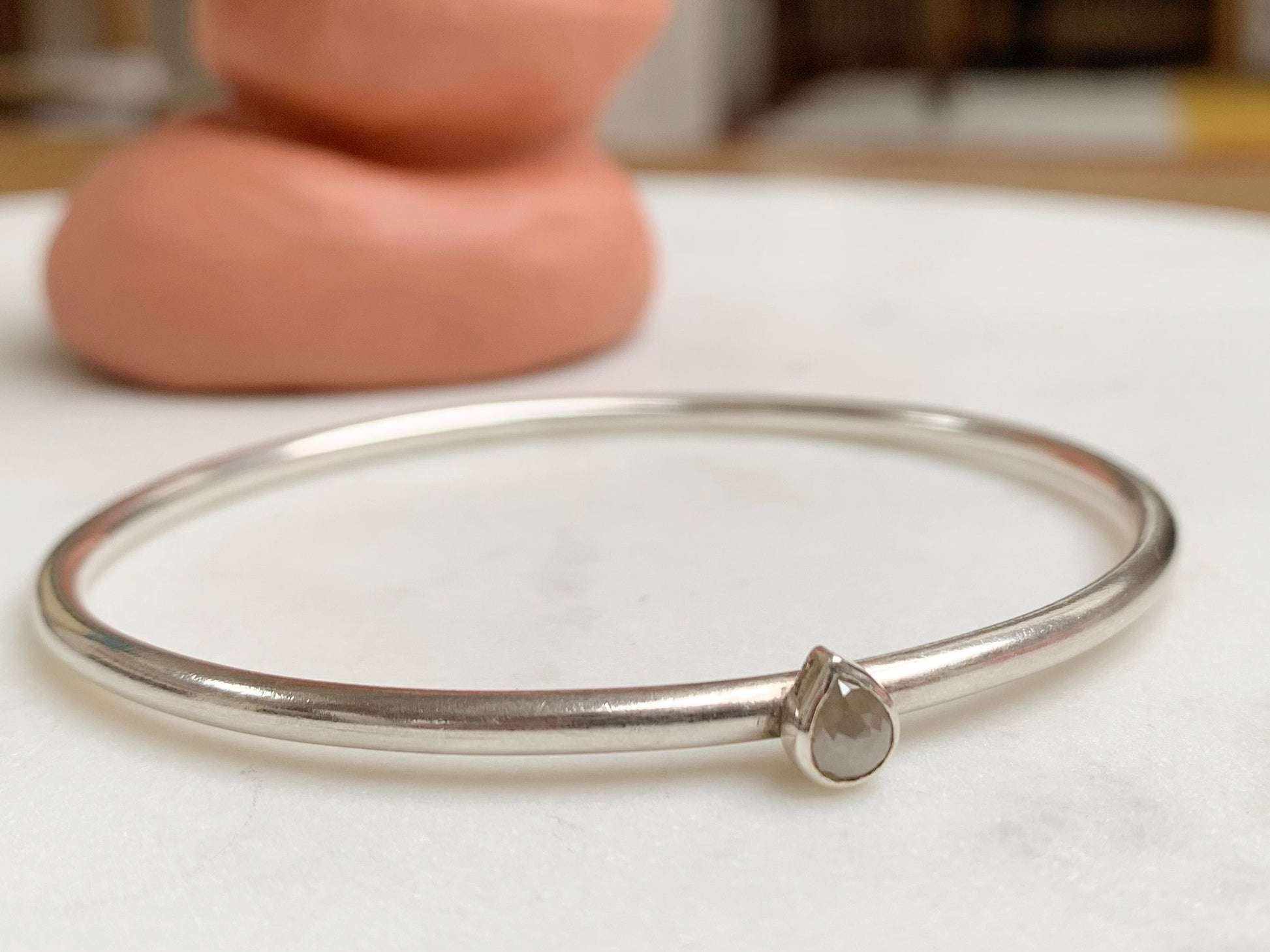 Silver Bangle with Diamond